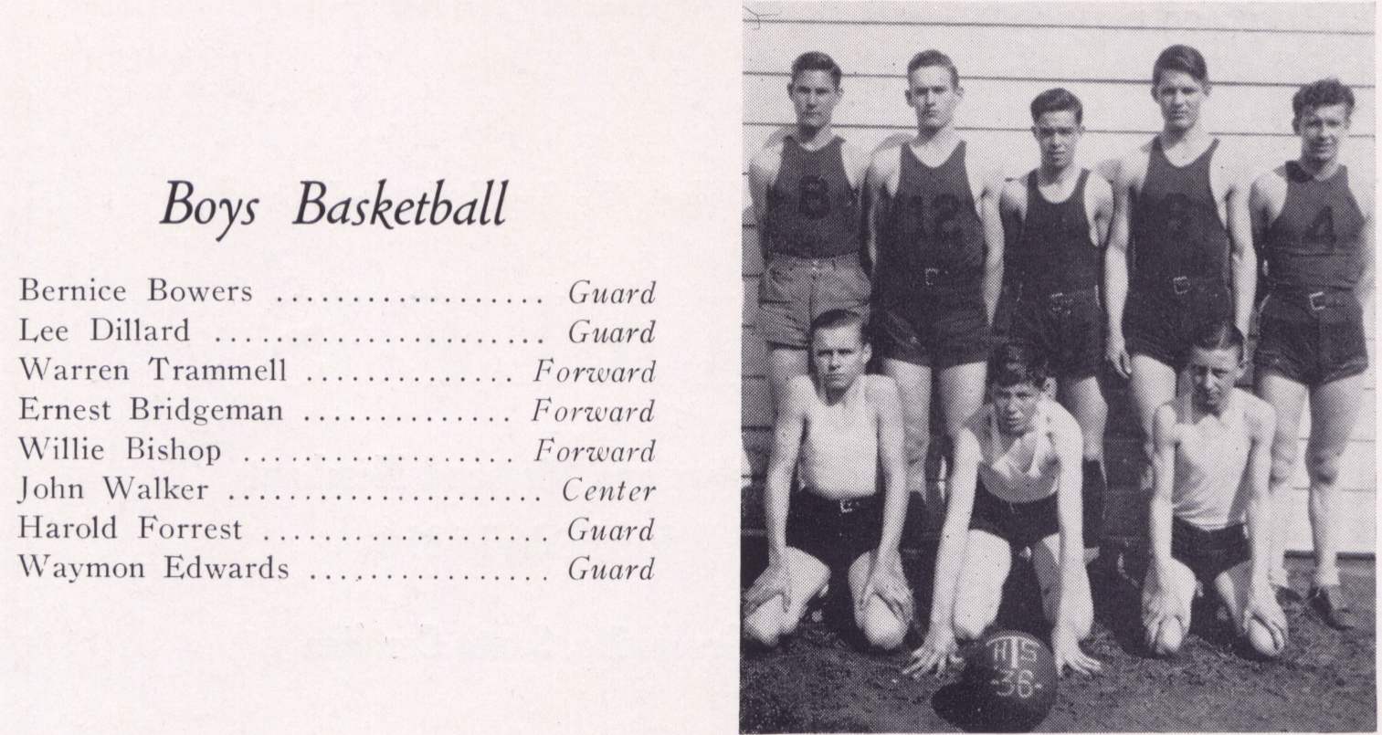 | 1936 Boys Basketball Team | ||||||||||||||||||||||||||||||||||
